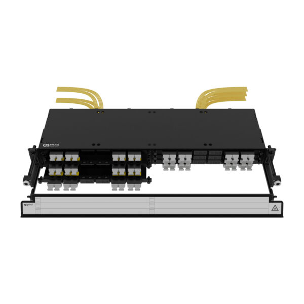 The fibre count can be increased to 432 fibres using very small form factor (VSFF) connectors. Front-loading modules enable quick configuration changes without disturbing existing fibres.