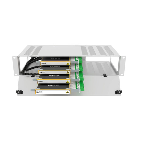 The 2U 19” Fibre Panel is a modular, high-density fibre management unit designed for splicing, patching, and pre-terminated cassettes. Supporting up to four righthand cassettes (96 fibres), it provides robust protection for both incoming cables and patch cords within a