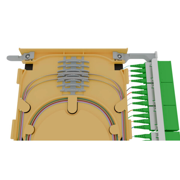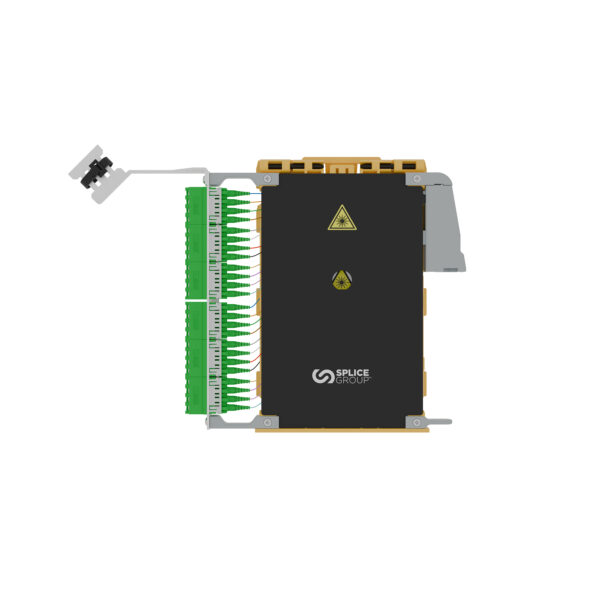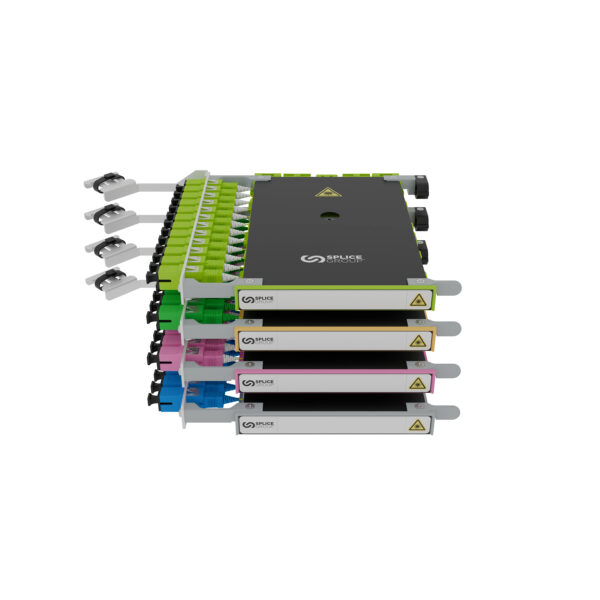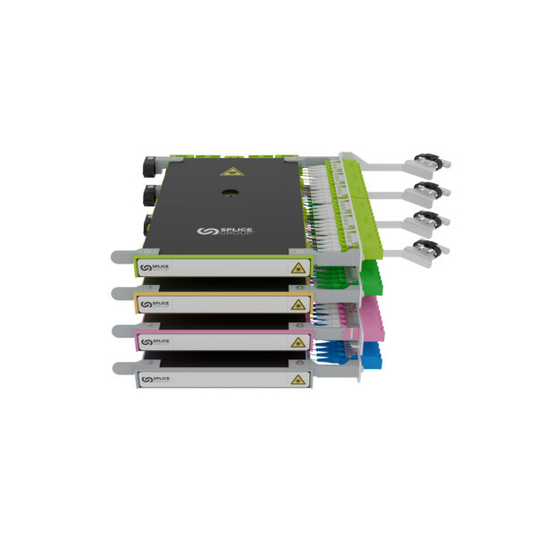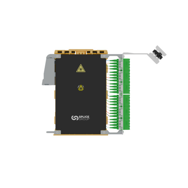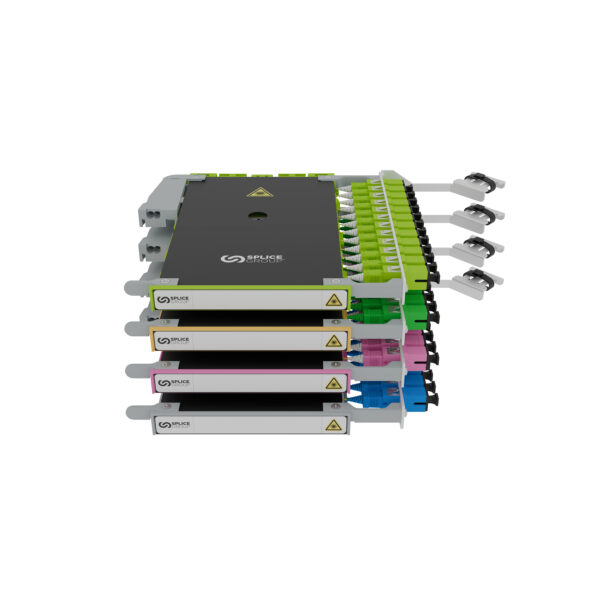 Engineered for seamless compatibility across the SpliceGroup™ portfolio—including Optical Distribution Frames, Wall Boxes, and Rack-Mounted Systems—it ensures a consistent and intuitive user experience. Its side-facing design maintains bend-radius control throughout, and two dedicated fibre storage areas support clean, well-organised ribbon fibre routing.