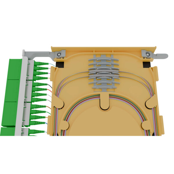 The cassettes’ slide-and-pivot mechanism provides unrestricted access during installation and patching operations. Accommodating up to 6 ribbon fibre splices, the cassette maximises density without compromising accessibility—making moves, adds, and changes (MACs) simple, safe and efficient.