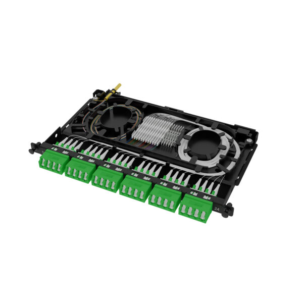 Accommodating up to twenty-four fibre splices, the module maximises port density without compromising accessibility—ensuring moves, adds, and changes (MACs) remain simple, safe and efficient.