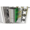 Built for scalability, the enclosure supports up to 18 SpliceGroup™ cassettes within a unified frame. Integrated cable management and a dedicated patching area ensure clean, reliable routing between cassettes and network interfaces.