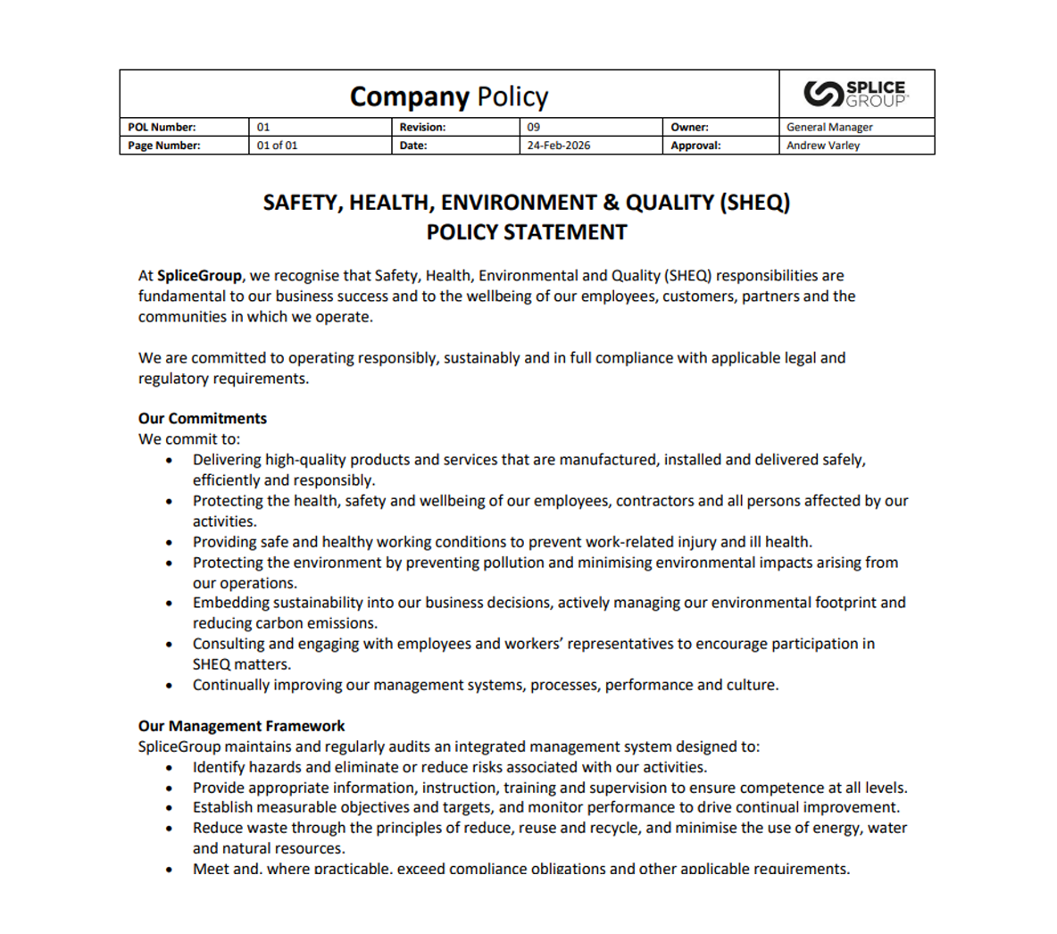 Safety, health, environment & quality (SHEQ) policy statement